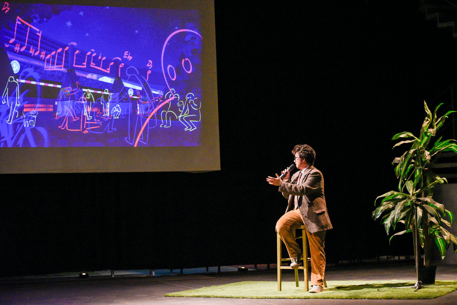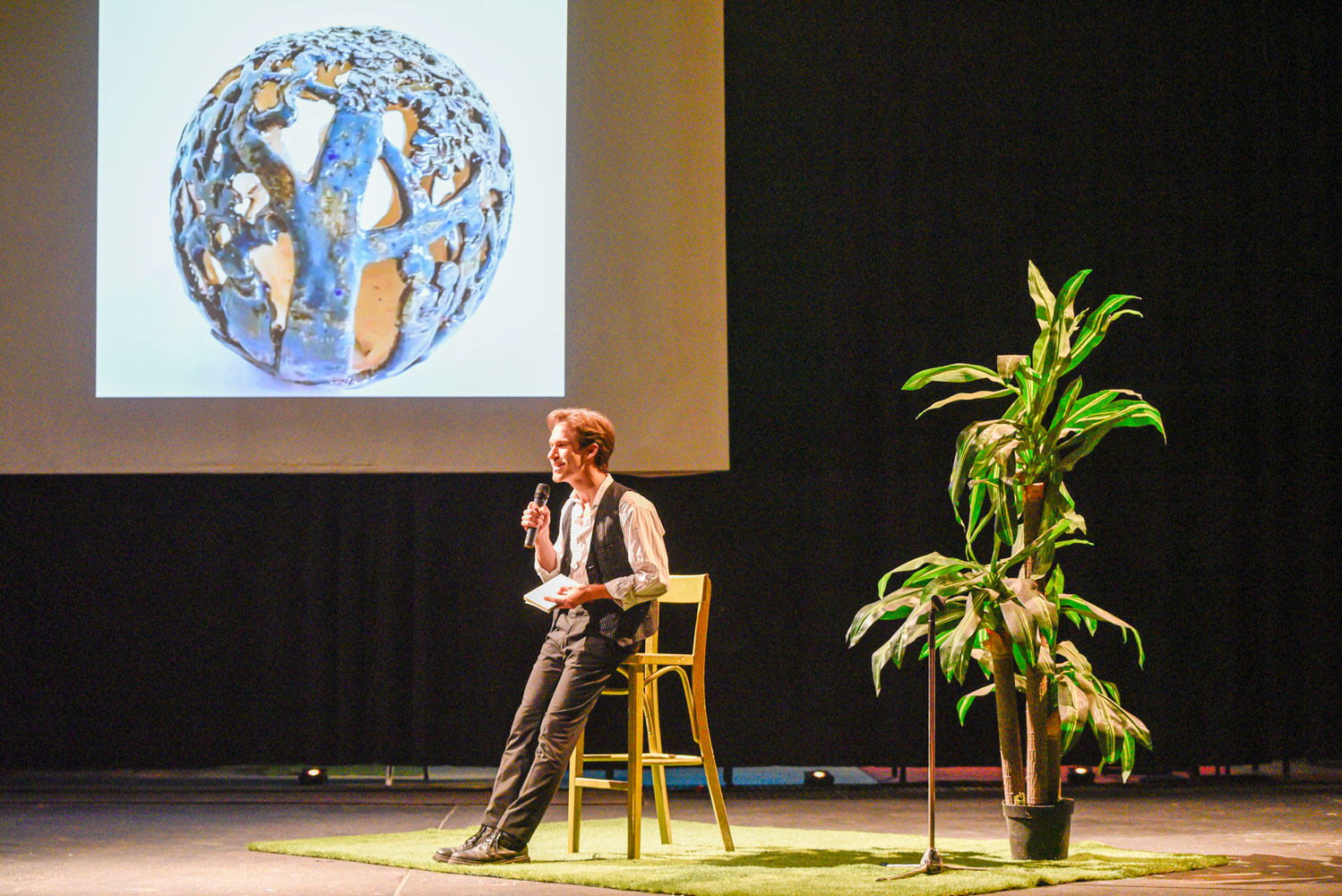 Das erste Mal ist immer aufregend. PAL ME. durfte euch am 22. Oktober ins Theater Altes Heizkraftwerk einladen. Es wurde ein schmutziger Film über die erste Idee damals und den Projektanlauf heute gezeigt. Dann die Exponate „Supernova“, „Unter Palmen“, „Szenen und Perspektive“ und „pen is present“ feierlich enthüllt. Die Künstler*innen Rayn Biryukov und David Schmitt erzählten von ihren Begegnungserfahrungen. Das Konzeptionsteam hinter PAL ME. stellte sich anregenden Entwicklungsideen, kritischen Diskussionen und Heiratsanträgen.